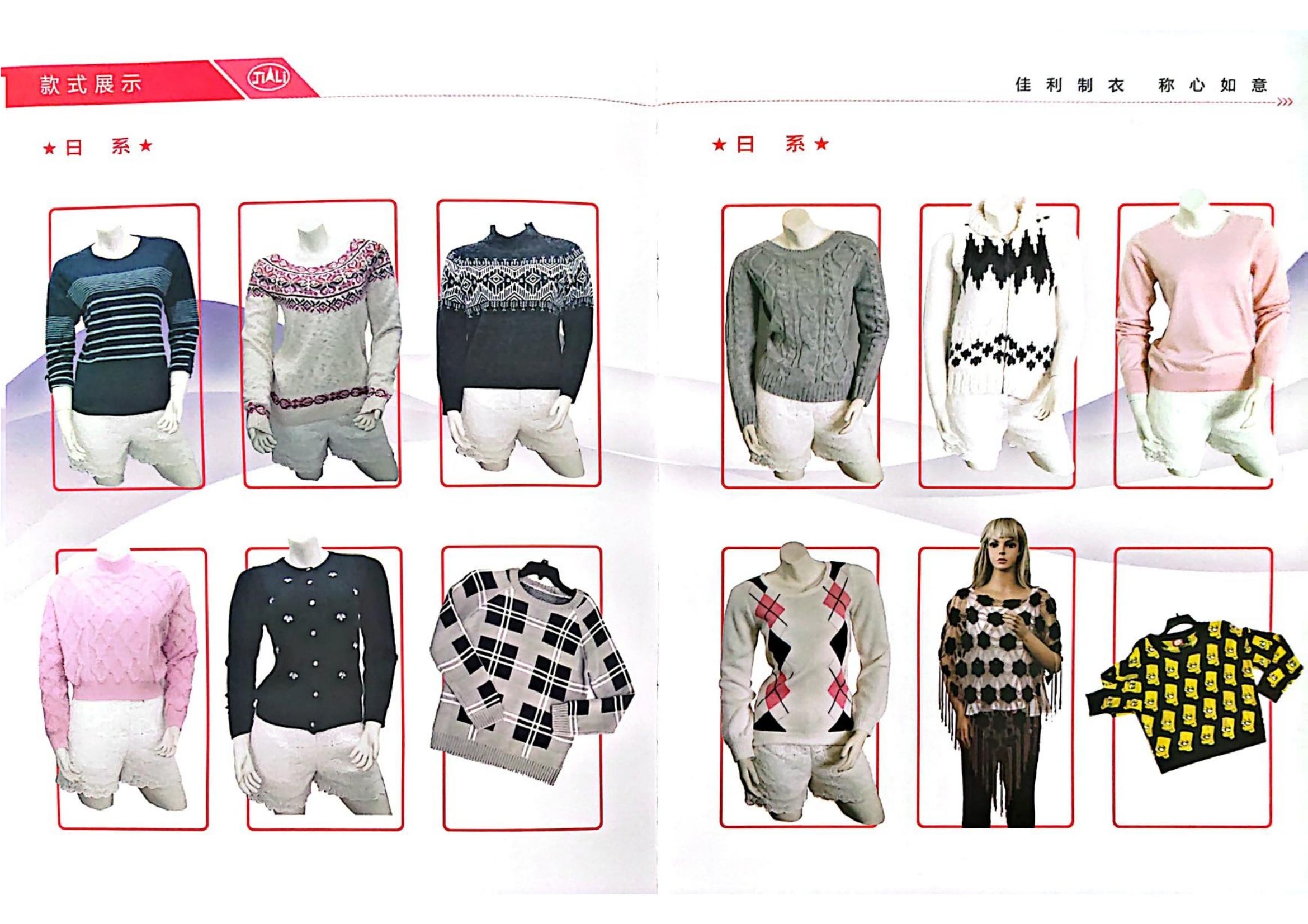 山東省乳山市佳利制股份有限公司于2001年2月成立,位于乳山市城區(qū)工業(yè)園營口路?,F(xiàn)有從業(yè)人員260人,其中男性100人,女性160人。固定資產5000萬元,占地22000㎡,建筑面積13800㎡。主要生產各種針型的毛衫及手鉤、刺繡等工藝服裝,針織、梭織面料服裝,主要銷往日本、美國、意大利、英國等幾十個國家和地區(qū)。